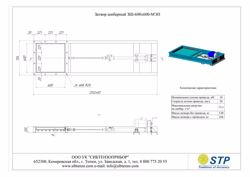 Наименование Габариты проходного окна шибера, мм Состав затвора шиберного ЗШ Масса Максимальная нагрузка на шибер, т/м2